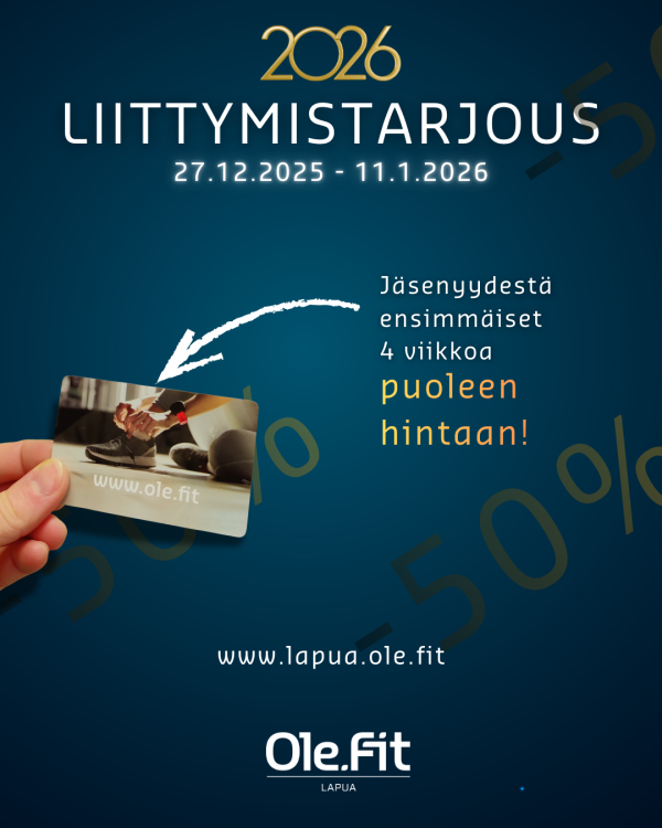 Tarjousjakson jälkeen jäsenyys jatkuu normaalihintaisena (valitse Kuntosali + Ryhmäliikunta tai pelkkä Kuntosali) kalenterikuukauden irtisanomisajalla. Tarjousjaksolla ei voi irtisanoutua. Tarjous koskee uusia ja palaavia asiakkaita. Ei voi yhdistää muihin alennuksiin. Tarjous voimassa 11.1.2026 saakka. Ostettavissa verkkokaupasta ja asiakaspalvelusta.